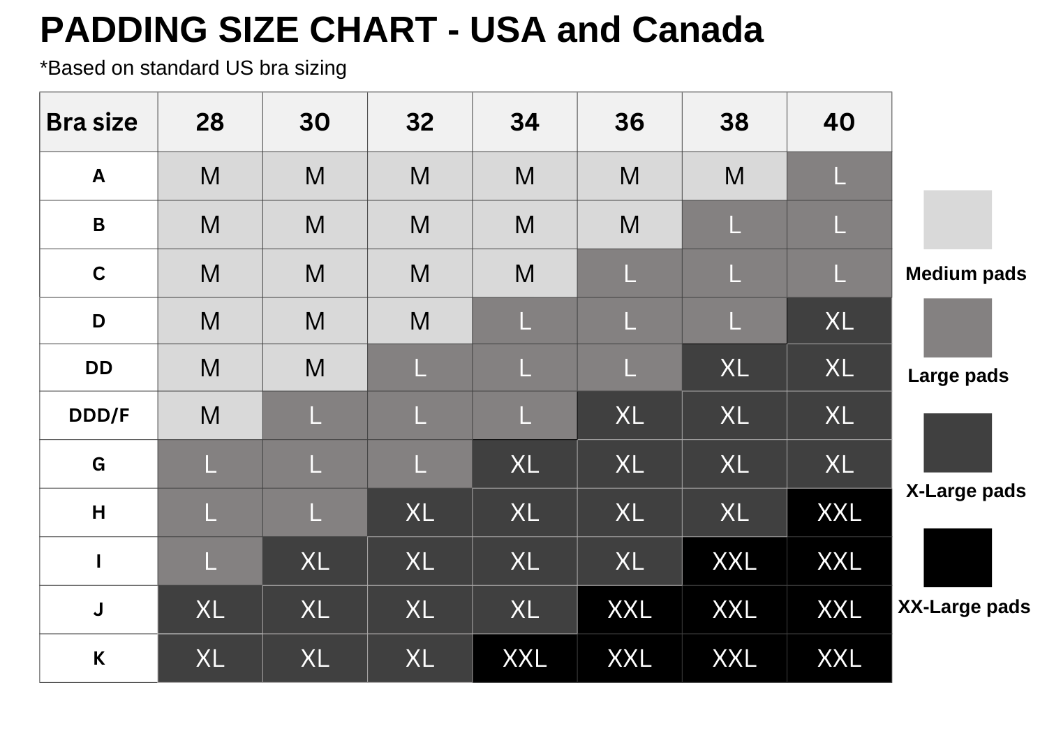 If you are between 2 sizes or have a small bust with a larger cup size, we recommend choosing the smallest size.